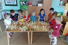10 июльдә “Гаилә, мәхәббәт һәм тугрылык” көненә багышлап, тәрбияче Әгъзамова Г.Х. 1 кечкенәләр төркеме балалары белән әти-әниләргә бүләккә кәгазьдән ромашка чәчәге ясадылар. Бүләк бик матур килеп чыкты. Балалар да, әти-әниләр дә бик куанды.