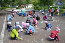 Воспитатели Валеева Т.В., Хабибуллина Ф.Ю., Самигуллина В.Р. организовали конкурс рисунков на асфальте среди детей подготовительной, старшей и средней групп на тему «Пусть всегда будет солнце!» Погода была солнечная, долгожданная, прекрасная! Дети творили чудеса. В конце все вместе спели песню С. Михалкова «Песенка друзей».