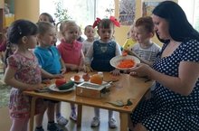 13 июня воспитатель Ахмадиева Г.И. в старшей группе провела занятие на тему «Витамины я люблю - быть здоровым я хочу!». Воспитатель рассказала детям о пользе витаминов, их значении для здоровья человека, о том, как различать витаминосодержащие продукты питания. Дети с интересом играли в дидактические игры «Повар и овощи», «Фруктовый мешочек». Занятие прошло очень увлекательно, дети совместно с воспитателем приготовили овощной и фруктовый салаты. Было всё очень вкусно и аппетитно!