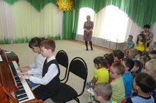 Сегодня детский сад “Солнышко” принял гостей из музыкальной школы. Перед воспитанниками выступили учащиеся 1-5 классов под руководством преподавателя по классу фортепиано Жемаловой Т.П. В концертную программу были включены произведения следующих композиторов: Ф.Госсек, И.Гайдна, Л.Бетховена, А.Руббах. Живая музыка проникла в детские сердца и оставила огромные впечатления.