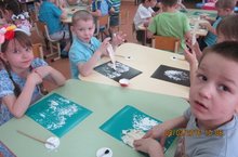 Воспитатель Тугашева Г.Х 04.02.2016г. провела занятие по рисованию в средней, старшей "А" и подготовительной группах. Тема занятия- "Зимний пейзаж", где мы использовали нетрадиционную технику. Необычные материалы и оригинальные техники привлекают детей тем, что здесь не присутствует слово "нельзя". В данном случае, мы с детьми применили листья пекинской капусты. Способ получения изображения: дети покрывали лист капусты белой гуашью, затем прикладывали его окрашенной стороной к бумаге для получения отпечатка. Получается изображение дерева, покрытого инеем. Дети были в восторге и получили массу впечатлений!