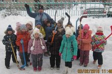 3 февраля воспитанники старшей «Б» группы под руководством воспитателя Валеевой Т.В. и физинструктора Шайхутдиновой Г.А. участвовали в зимних спортивных играх-соревнованиях под названием « Трус, не играет в хоккей». Две команды соревновались в ловкости, смелости и выносливости. Хорошая погода, и задорная игра не давали им расслабиться. Все веселые и радостные вместе сфотографировались на память.
