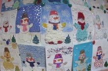 В старшей Б группе был объявлен конкурс на тему «Снеговик». Воспитатель ВалееваТ.В провела совместно с детьми и родителями беседу, как можно готовых снеговиков оформить разными нетрадиционными способами и организовала выставку рисунков. Каждый ребенок показал свой рисунок и рассказал, почему именно так он его оформил, какие материалы применял при работе. Дети и родители остались довольны своими работами.