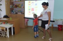 30 сентября воспитатель татарского языка Миннебаева Алсу Фагиловна и музыкальный руководитель Ялозюк Гульназ Альбертовна провели открытое занятие по программе "Ана теле" на тему "Кил, бие". Цель: учить русскоязычных детей татарскому языку. На занятии присутствовало и снимало занятие съемная группа ЗайТВ.
