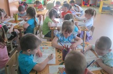 12 мая Валеева Т.В. провела экологическое занятие во 2 младшей Б группе по картине "Домашние птицы". Каждый ребенок закрашивал по одному рисунку.