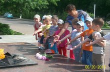 22 июня 2013 года дети д/с "Солнышко" ходили возлагать цветы к памятнику Неизвестного солдата, вспомнили о подвигах наших предков. Воспитатель Юнусова Л.Ф. рассказала детям и о Вечном Огне. Дети узнали, что Вечный Огонь будет вечно гореть в память о них, в знак огромной благодарности этим войнам!