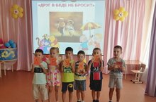 9 июля в д/с "Солнышко" прошел КВН «Друг в беде не бросит…». В игре принимали участие две команды. Ребятам было дано домашнее задание: придумать название и девиз своей команде. Средняя группа назвали свою команду «Солнышко», а старшие– «Радуга». Воспитатель по обучению родному языку Миннебаева А. Ф. во время игры предлагала командам различные конкурсы: продолжить пословицы о дружбе, найти друга сказочного персонажа, вспомнить мультфильмы, в которых показана настоящая дружба. Команды прекрасно справились с музыкальным конкурсом. В нашей игре не было ни победителей, ни побежденных. Победила – ДРУЖБА!