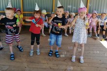 15 июля дети участвовали в празднике под названием "День мыльных пузырей". Они пробовали надувать мыльные пузыри, сравнивали их размеры и старались удержать их в воздухе. Самым интересным было наблюдать за поведением пузырей при встрече с различными объектами.