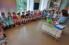Наступила пора жаркого лета. Воспитанники средней группы, вооружившись лейками и ведерками, поливают лук, горох, а также ухаживают за цветами на клумбах. Такая забота о растениях и овощах сулит хороший урожай осенью.