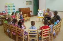 Воспитатель по обучению татарскому языку Зоя Иосифовна организовывает с детьми игры на татарском языке.