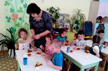 В старшей «Б» группе было проведено занятие по ИЗО на тему «Герб Заинска», дети рассмотрели форму герба и его основные цвета, выяснили, что они символизируют, затем при помощи техники пластилинографии дети вылепили герб нашего города.