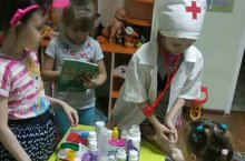 Дети подготовительной группы "Комарик" охотно принимают участие в сюжетно ролевых играх. самостоятельно распределяют роли, создают соответствующую игровую обстановку. В процессе игр дети научились отражать содержание деятельности представителей разных профессий. Тема «профессии» прошла через все виды деятельности. С большой охотой дети изготовляли атрибуты к сюжетно-ролевым играм. Для «Больницы» из бумаги делали медицинские карты и талоны. И сейчас они с удовольствием играют в эту сюжетно-ролевую игру перевоплащаясь то в доктора, то в пациента.