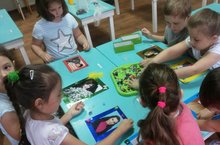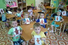 Сегодня дети старшей подготовительной группы "Лягушонок" на занятии по аппликации, учились создавать изображение любимой игрушки "Мишка" из частей, правильно передавая их форму и относительную величину. Также на занятии они закрепили умение вырезывать части круглой и овальной формы, аккуратно наклеивать изображение и красиво располагать его на листе бумаги;