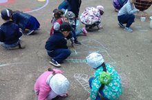 Во дворе детского сада сегодня прошел конкурс рисунков на асфальте. Дети при помощи цветного мела передавали свои впечатления от праздника Сабантуй.