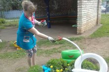 Продолжается работа по благоустройству детских площадок на территории детского сада "Теремок". Воспитатель второй младшей группы Рыжова Т.С. наводит красоту, чтобы порадовать своих воспитанников.