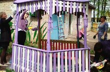 Идет подготовка к летнему оздоровительному сезону и сотрудники детского сада приступили к благоустройству территории. Сегодня покрасили беседки и облагородили клумбы.