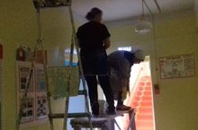 А у нас в саду субботникВышел каждый к нам работникИнвентарь мы закупилиВсех вокруг оповестилиВалики есть, кисти, краскиСделали из сада сказку! -