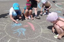 А вокруг полно чудес...Рисовали дети мелом:Света - синим, Юля - белым,А Танюша на дорожкеРисовала домик кошке. -