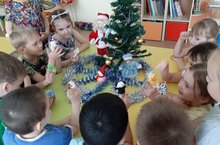 Дети старшей группы с помощью воспитателя Мухановой Ю.И. сочинили новогоднюю сказку "Дед Мороз и Снегурочка в гостях у зверят". Устроили зверятам веселый праздник. Зверята рассказали Дед Морозу стихи, спели песенку «В лесу родилась елочка». Дети почувствовали себя одновременно актерами, режиссерами, декораторами своего представления.
