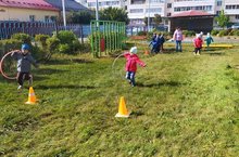 В старшей группе физинструктор Фаршатова А.Т. провела эстафету с обручами. Целью было познакомить ребят с гимнастическим обручем, научить с ним играть, показать способы владения обручем. Дети быстро овладели этим гимнастическим снарядом и с большим удовольствием участвовали в эстафете.