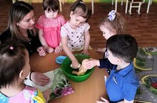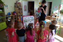 На третьем году жизни дети становятся самостоятельнее. Дети раннего возраста начинают играть с предметами-заместителями, в игре им легче всего усваивать правила и нормы. Так, например культурно - гигиенические навыки дети лучше воспринимают в игре с куклой. Совместно с воспитателем Альбиной Зуфаровной воспитанники младшей группы "Ёжик" купают куклу Катю, моют ей лицо и руки. Вместе с воспитателем они определили, как нужно последовательно действовать: сначала раздеть, искупать, вытереть, одеть. Также, в игре закрепили слова: мыло, таз, полотенце...Такие игры очень нравятся детям, приносят им радость, формируют навыки общения и развивают игровые навыки. -