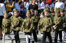 9 мая вся страна отмечала праздник – День Победы. Нет такой семьи, такого человека, которых не коснулась боль этих военных лет. Подвиг людей, ушедших защищать нашу страну, никогда не будет забыт. Наши маленькие дети, дошкольники, уже понимают, как трудно пришлось выживать людям и на передовой, и в тылу. С гордостью наши ребята одели на себя военную форму и вышли на парад. -