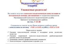 Уважаемые родители! Вы можете получить психолого-педагогическую консультацию и методическую помощь дистанционно от педагогов-психологов Муниципальной психолого-педагогической службы Заинского муниципального района по тел. 7-13-40 Специалисты ответят на все Ваши вопросы в рабочее время с понедельника по пятницу с 8.00. до 16.00, всубботу с 8.00 до 12.00 Наши цели и задачи Оказание психологической помощи и поддержки детям, родителям, педагогам Оказание оперативной психолого-педагогической реабилитационной помощи детям и их родителям Повышение личной и профессиональной успешности Психологическое сопровождение в органах суда