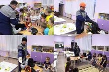 В старшей группе «Буквоешки» была проведена беседа, во время, которой дети познакомились с профессией слесаря – ремонтника нефтепромыслового оборудования и с техникой безопасности во время проведения ремонтных работ.