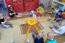 Существует много игр, упражнений для развития мелкой моторики рук. В группе «Светлячки» появилась новая игра «Солнышко», которую сшила для детей мама Даниила Светлана Михайловна.