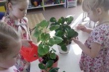 Расширить представления детей о комнатных растениях: их пользе и строении – такая задача стояла перед воспитателем средней группы «Звездочки» на очередном занятии по ознакомлению детей с природой. Ребятишки не только учились различать комнатные растения по внешнему виду, но приобретали навык ухода за ними: протирали листья влажной салфеткой, поливали из лейки. Дети познакомились с некоторыми названиями – толстянка, герань (пеларгония), каланхое.