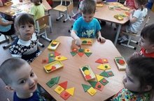 Фундамент умственного развития и начало сенсорной культуры закладываются именно в раннем возрасте. Хотя малыши еще не готовы к усвоению сенсорных эталонов, но у них начинают накапливаться представления о цвете, форме, величине и других свойствах предметов. С целью реализации этой задачи, воспитатель 1 младшей группы «Ангелочки», Сафронова Т.А. проводит специальные игры по сенсорному развитию детей, предлагая им самый универсальный дидактический материал –логические блоки Дьенеша, которые состоят из объемных геометрических фигур, отличающихся по форме, цвету, размеру и толщине. Таким образом, используя логические блоки Дьенеша в системе сенсорного развития детей 2-3 лет, не только закрепляются полученные знания, но и развиваются мыслительные умения малышей: сравнение, анализ, классификация, обобщение.