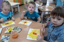 Во второй младшей группе «Жемчужинки» дети рисовали и экспериментировали. На мокром листе бумаги они создавали образ солнышка.