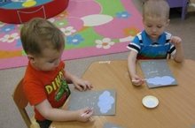 Сегодня малыши 1 младшей группы «Ангелочки» рисовали снегопад.