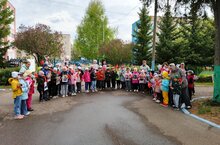 Трогательным моментом стало шествие колонны по территории детского сада, а младшие ребята, глядя в окно, приветствовали участников.