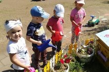 Малыши группы "Светлячки" учатся ухаживать за цветами.
