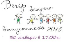 Дорогие выпускники нашей гимназии! Приглашаем вас на Вечер встречи выпускников, который состоится 30 января 2015 г. в 17.00 ч. в актовом зале школы.