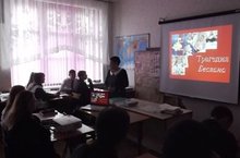 3 сентября в 11 классе прошёл урок, посвящённый 10-ой годовщине трагических событий в городе Беслан. Урок проходил в рамках Дня солидарности в борьбе с терроризмом. Это самая новая памятная дата России. Она связана с трагическими событиями, которые произошли в Беслане. 1 сентября 2004 года бесланская школа № 1 была захвачена террористами. 1128 детей и взрослых взяты в заложники. Более 300 человек погибли. Учитель истории Закирова Г. Х. показала ребятам документальный фильм об этих событиях, рассказала о том, как все происходило.