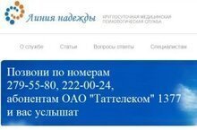 "Линия надежды" - единственная в Республике Татарстан медицинская психологическая служба: круглосуточная, бесплатная, анонимная