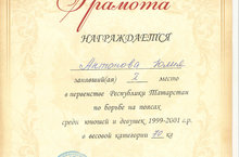 Поздравляем Антонову Юлию, занявшую 1 место в первенстве Республики Татарстан по борьбе на поясах среди юношей и девушек 1999-2001г.р. Молодец!