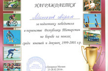 Учитель физической культуры Мингазов А.Р. награжден Грамотой за подготовку победителя в первенстве Республики Татарстан по борьбе на поясах среди юношей и девушек 1999-2001 г.р., который проходил в с.Базарные Матаки 25-28.02.2016г. Поздравляем и желаем новых побед!