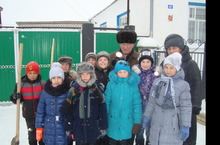 В рамках месячника военно-патриотической работы в школе проходят разные мероприятия. Ребята помогают ветеранам, чистят снег.
