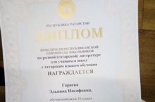 Поздравляем победителя Республиканской олимпиады школьников по родной (татарской) литературе.