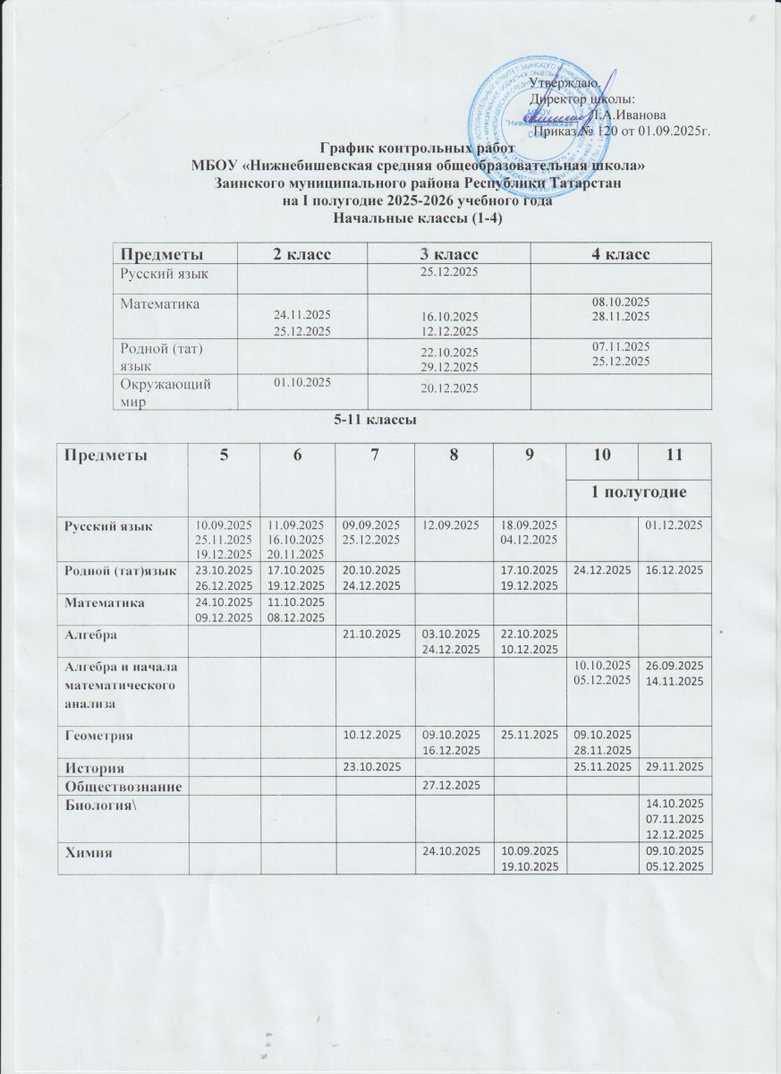 График контрольных работ 1 полугодиеЧисленность обучающихся по реализуемым образовательным программам СОО за счет бюджетных ассигнований федерального бюджета в 2024-2025 учебном году: 2