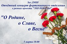 5 марта состоится Отчетный концерт фортепианного отдела. Начало в 18:00, вход свободный.