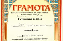 Команда Заинского политехнического колледжа заняла I место в эстафете по лыжным гонкам, посвящённой закрытию лыжного сезона среди команд предприятий, организаций и учреждений Заинского муниципального района.