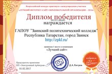 Заинский политехнический колледж стал победителем в конкурсе "ЛУЧШИЙ ИНТЕРНЕТ-САЙТ ОБРАЗОВАТЕЛЬНОЙ ОРГАНИЗАЦИИ - 2016" и был удостоен Диплома и Значка победителя. Колледж стал единственным участником от Республики Татарстан во Всероссийском конкурсе.