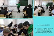 21 января, в группе 1701 прошел классный час на тему: «Глобальные проблемы экологии»