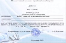 30 ноября 2021 года на базе ГАПОУ «Бугульминский машиностроительный техникум» прошел конкурс фрилансеров по созданию локального WEB – ресурса с использованием любого языка программирования для верстки по техническому заданию