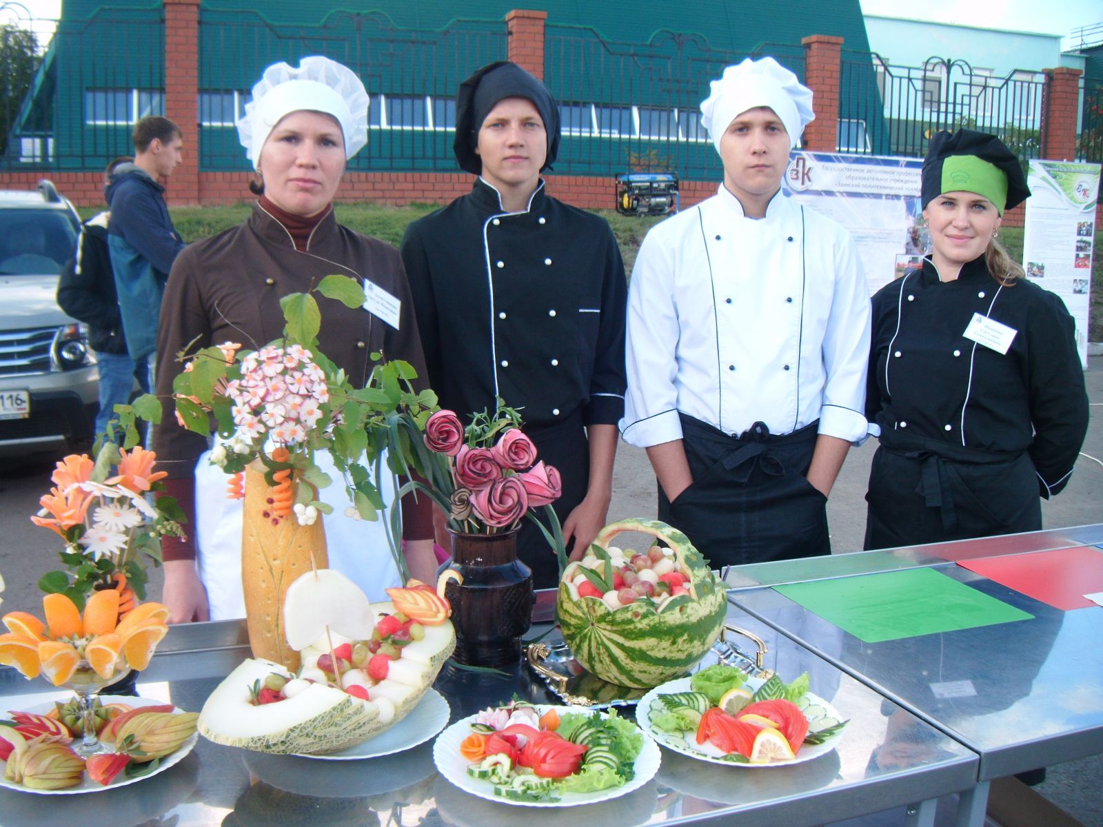 Опубликовано: 16.09.201616 сентября в городе Заинск после значительной реконструкции состоялось открытие парка культуры и отдыха имени Р.Ш. Фардиева. В программе праздника приняли участие студенты и преподаватели Заинского политехнического колледжа. Ими была развёрнута презентационная площадка «Мир профессий», где на обучающих тренажёрах ребята демонстрировали профессиональные трудовые приёмы, а любой из зрителей имел возможность самостоятельно их повторить. Повара провели мастер-класс по карвингу, будущие технологи в области машиностроения показали элементарные приёмы обработки деталей, электрики обучали сборке электрических цепей, сварщики предлагали попробовать выполнить сварные швы, автомеханики учили управлять автомобилем, так же можно было попробовать свои силы в слесарной обработке металла. А участники театральной студии на импровизированной сцене разыграли сцены из любимого всеми фильма «Жестокий романс».