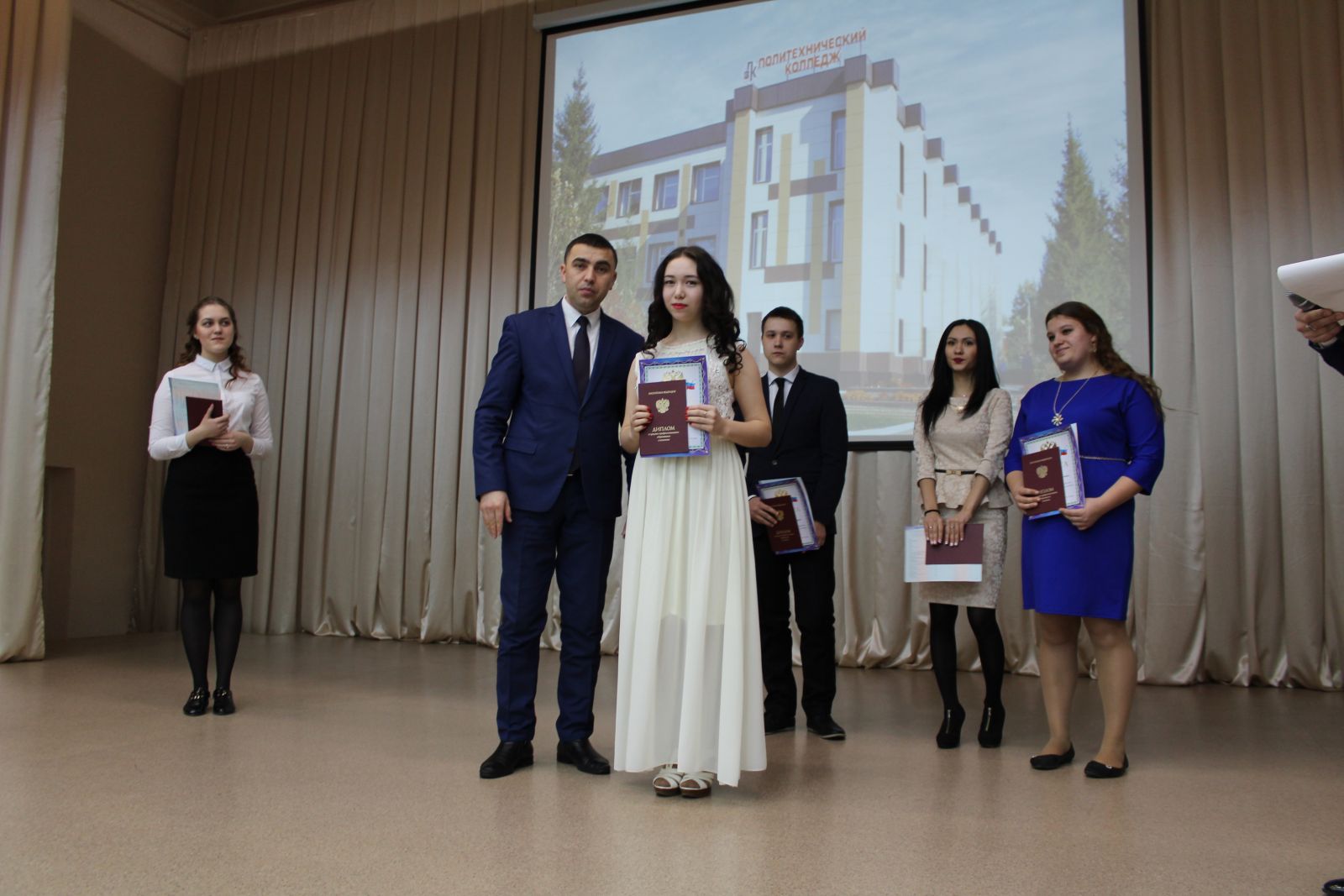 Опубликовано: 08.02.20178 февраля в колледже прошло торжественное вручение дипломов выпускникам по программам подготовки квалифицированных рабочих и служащих. Завершили обучение в 2017 году – 70 человека. По итогам защиты выпускных квалификационных работ «4» квалификационный разряд получили 34 человека. За итоговый выпускной квалификационный экзамен «отлично» получили 24 человека, «хорошо» - 28 человек. Выпускников чествовали Руководитель Исполнительного комитета Заинского муниципального района Хафизов И.Ф., Начальник управления сельского хозяйства и продовольствия Галиахметов А.Н., директор колледжа Халитов Р.М., приглашённые представители работодателей.